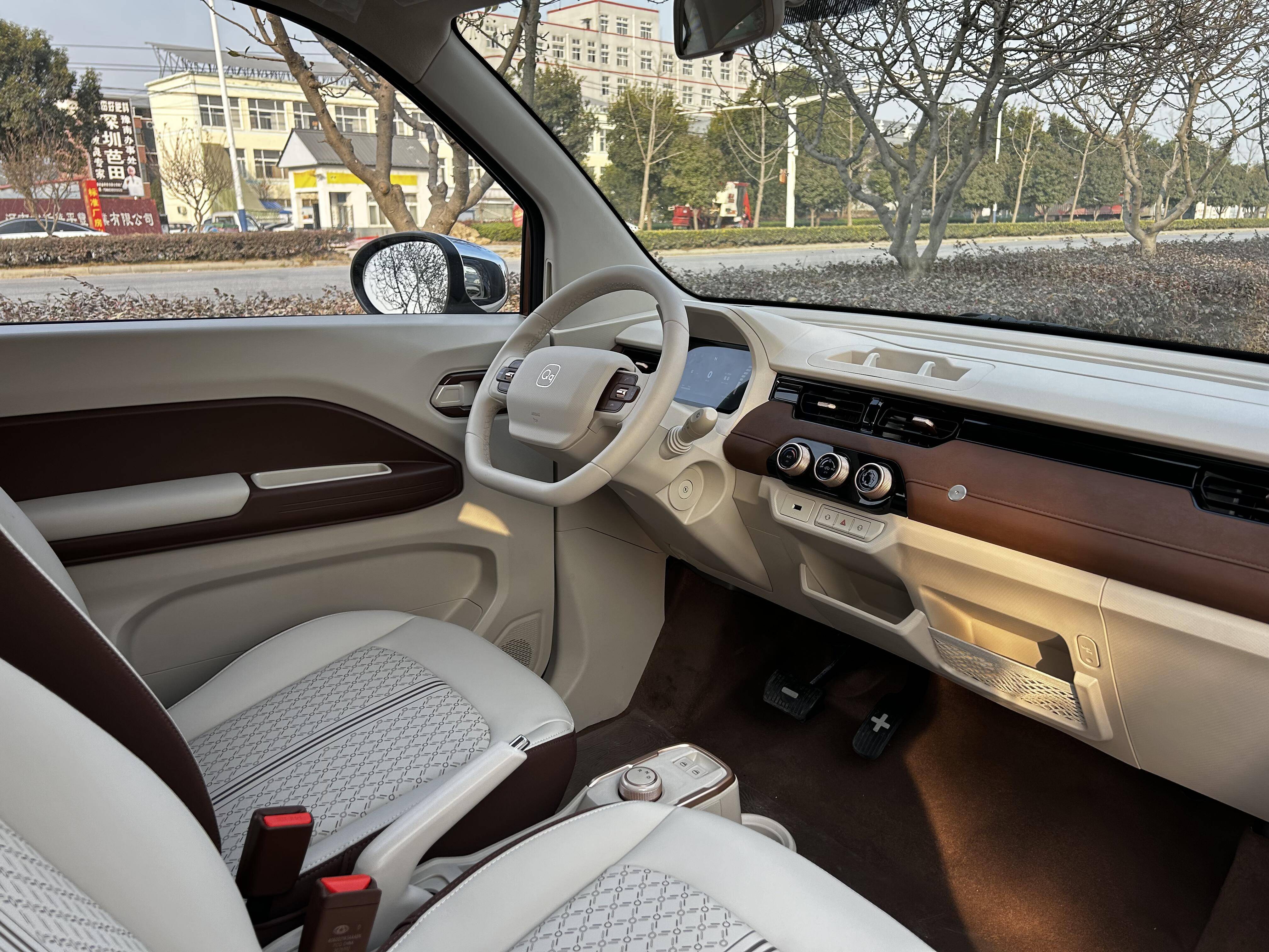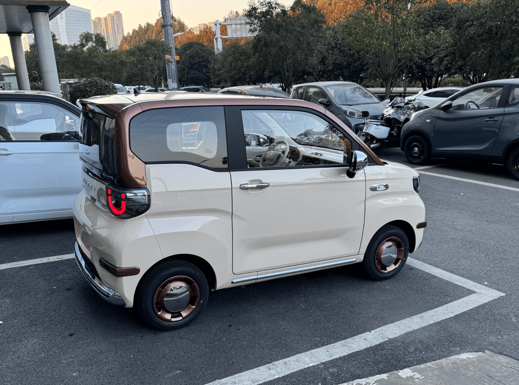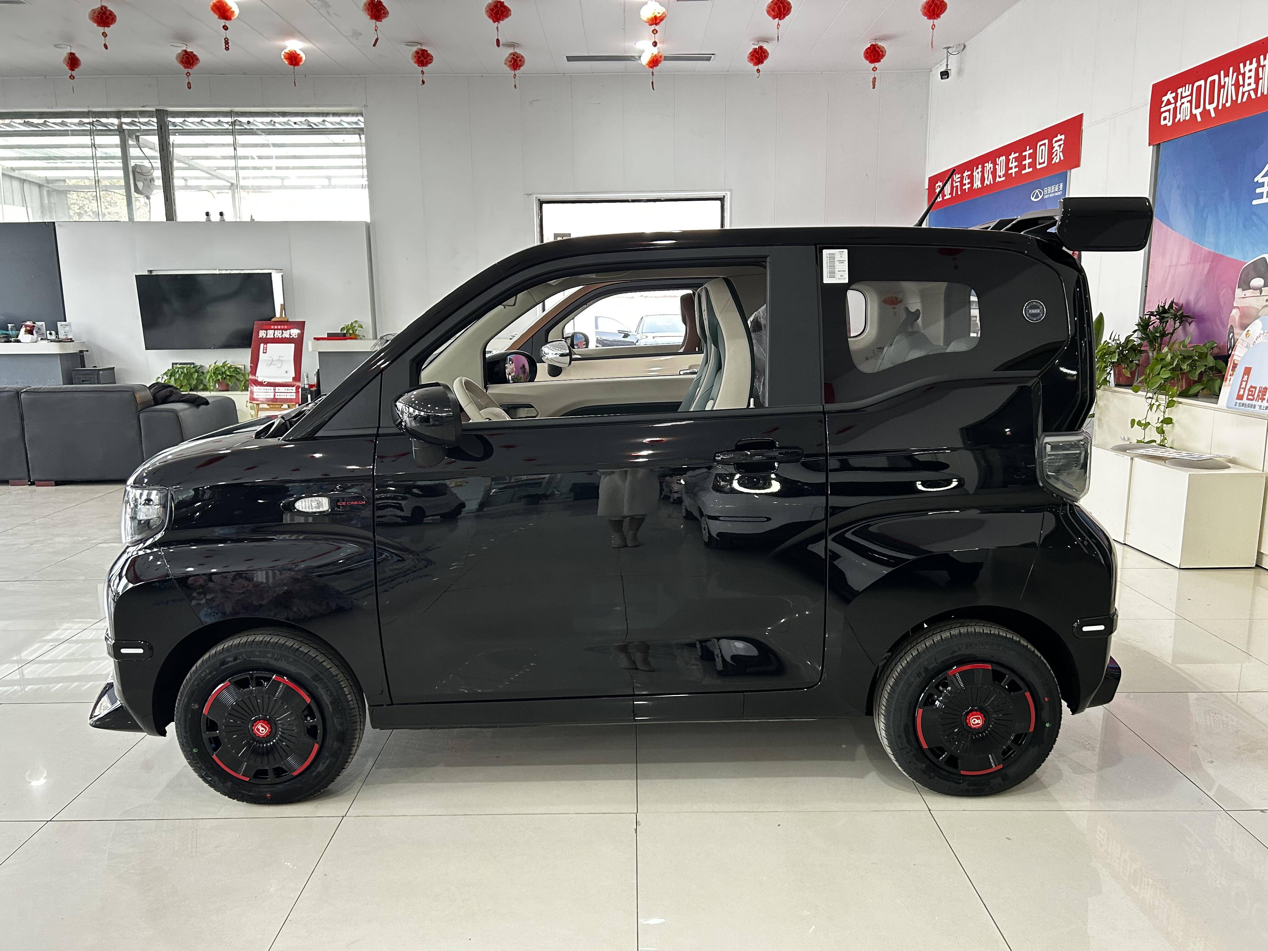 车身尺寸长宽高分别为3030(3102)/1496/1637(1655)mm,轴距1960mm,相比现款车型有所加长。其中,英伦版提供深咖色+浅黄色双拼色车身,以及同色系“大饼”风格轮毂,同时外后视镜、门把手、转向灯以及侧裙处均加入镀铬饰条点缀,进一步提升了质感;竞速版则采用“黑武士”风格,并配备全新黑红双色轮毂,继续强调运动气息。另外,C柱上还将增加“终身质保”标识。