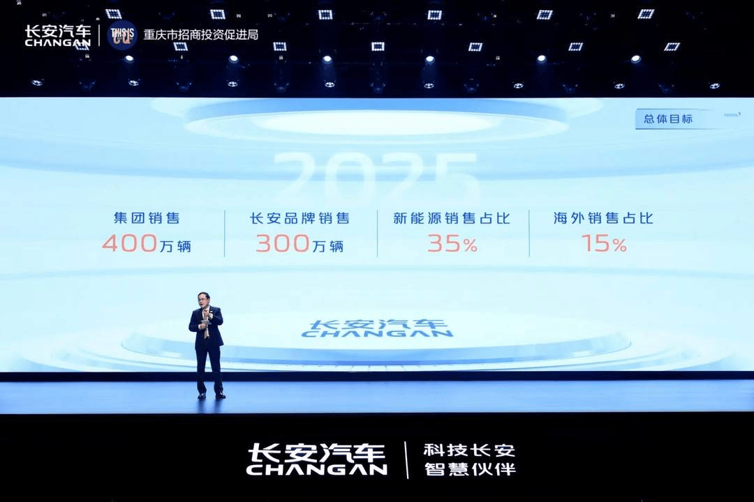 曾在2025全球伙伴大会上,长安汽车董事长朱华荣宣布了“3311”全年目标,即总销量300万辆、全口径收入3000亿元、新能源车销量100万辆、海外销量100万辆。