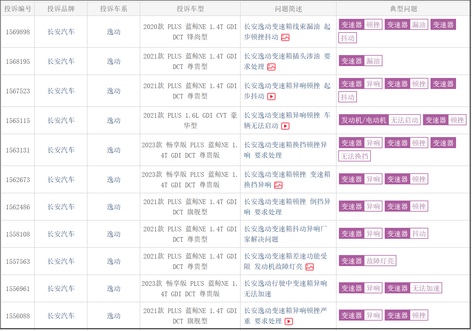 而逸动的变速箱漏油及顿挫情况已成为通病。一位车主表示,在冬季车子冷启动后行驶踩油门不加速,发动机空转,转速高,低速行驶中换挡延迟,顿挫,出现四次变速箱齿轮传动的声音。跑了好几次长安4s店,4s店都以没有故障码为由拒绝维修和检测,他们还跟我说,这些症状都是双离合变速箱的通病,很正常。