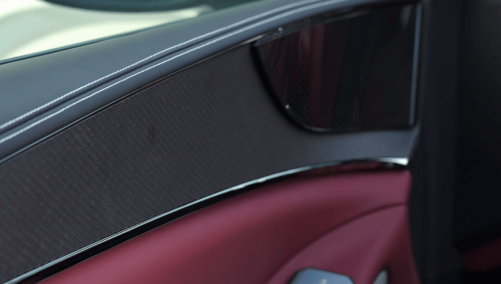 虽然在外形上,腾势没有太多改造空间,但26款Z9GT内饰观感和体验升级却一目了然。新车首先拿出红、灰、白三种新内饰配色,试驾车就采用熔岩红包覆,个人感觉色泽不算过分浓烈,白色滚边和缝线弱化鲜艳的饱和度,而且车内红黑编织的真碳纤维饰板,铺陈面积也很大气,增强了26款Z9GT的运动气质。当然,腾势对座椅填充也进行重新设计,结合一体式运动造型,从肩部、腰部支撑,到靠背、坐垫承托,前后排都有良好的贴合感。