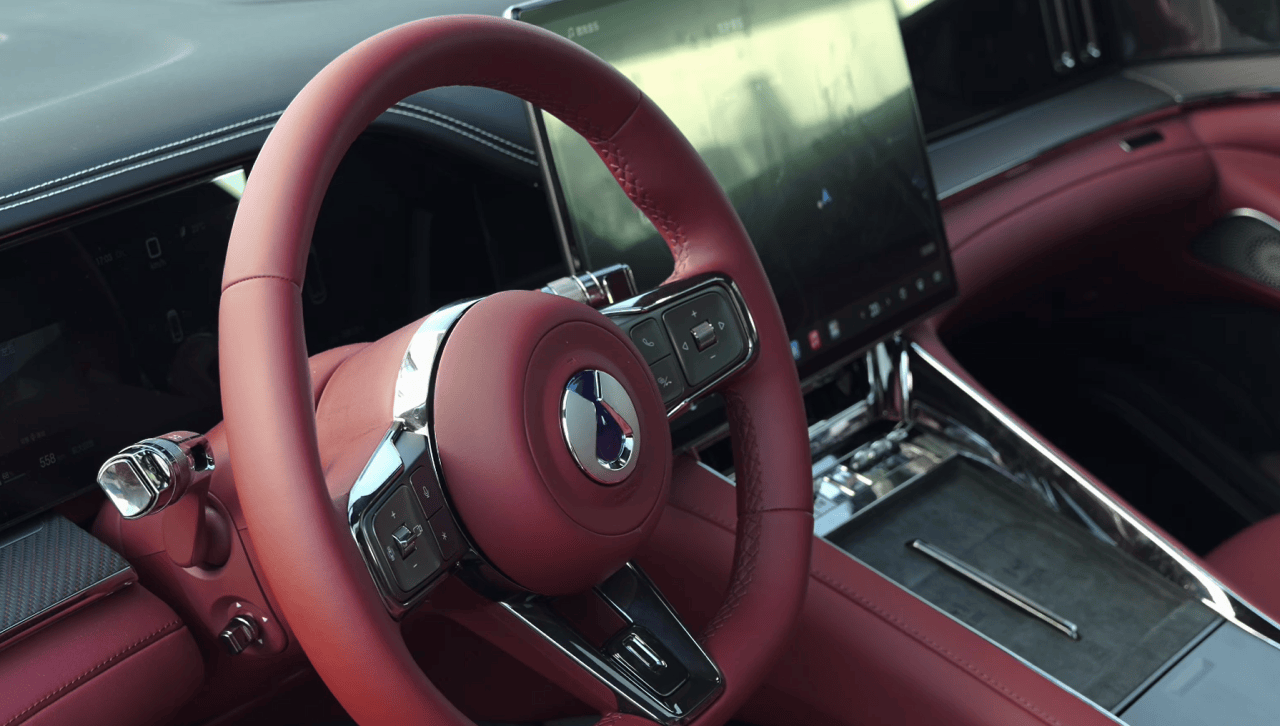 26款Z9GT的改进不仅停留于此,三幅方向盘取代了旧款偏商务的款式,左侧拨片依然负责天神之眼的快速开闭,右侧红色Boost拨片则能让易三方车型开启20秒“增压”模式,满额输出峰值功率。同样出现在方向盘后的还有电子换挡拨杆,而原本电子排挡区域重新设计后,显得更为简洁。至于把两侧空调出风口改为竖向,则是26款Z9GT不易察觉的小心思。