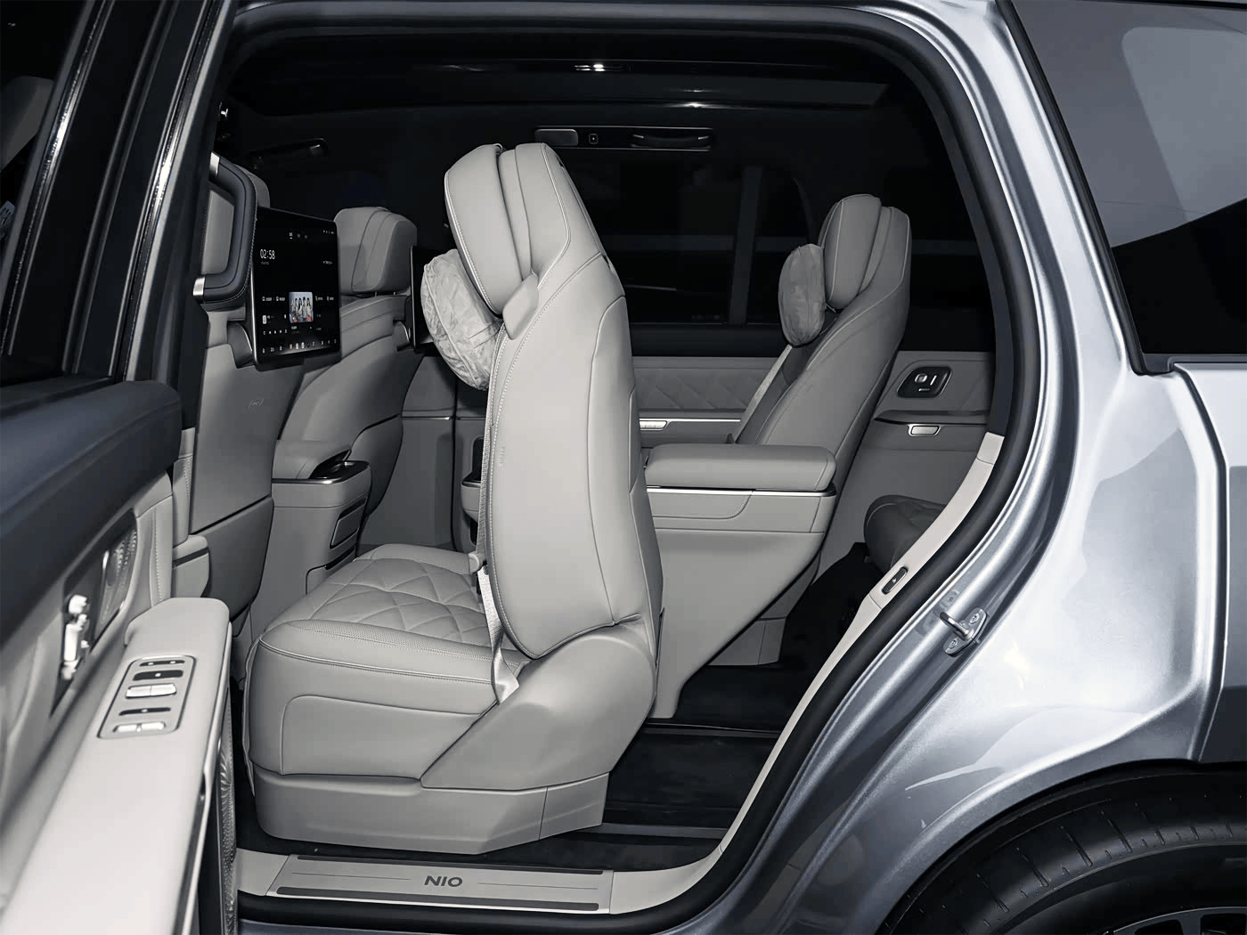蔚来ES9的车身尺寸很大,是达到5365*2029*1870毫米,轴距也达到3250毫米;六座布局确实能保证所有座椅的腿部空间,可视化第三排座椅的乘坐体验能和同级别MPV相提并论吗?SUV的车头长,座舱的尺寸难免会小一点,第三排座椅的腿部空间很难做到足够大,下面通过图片来感受一下吧。